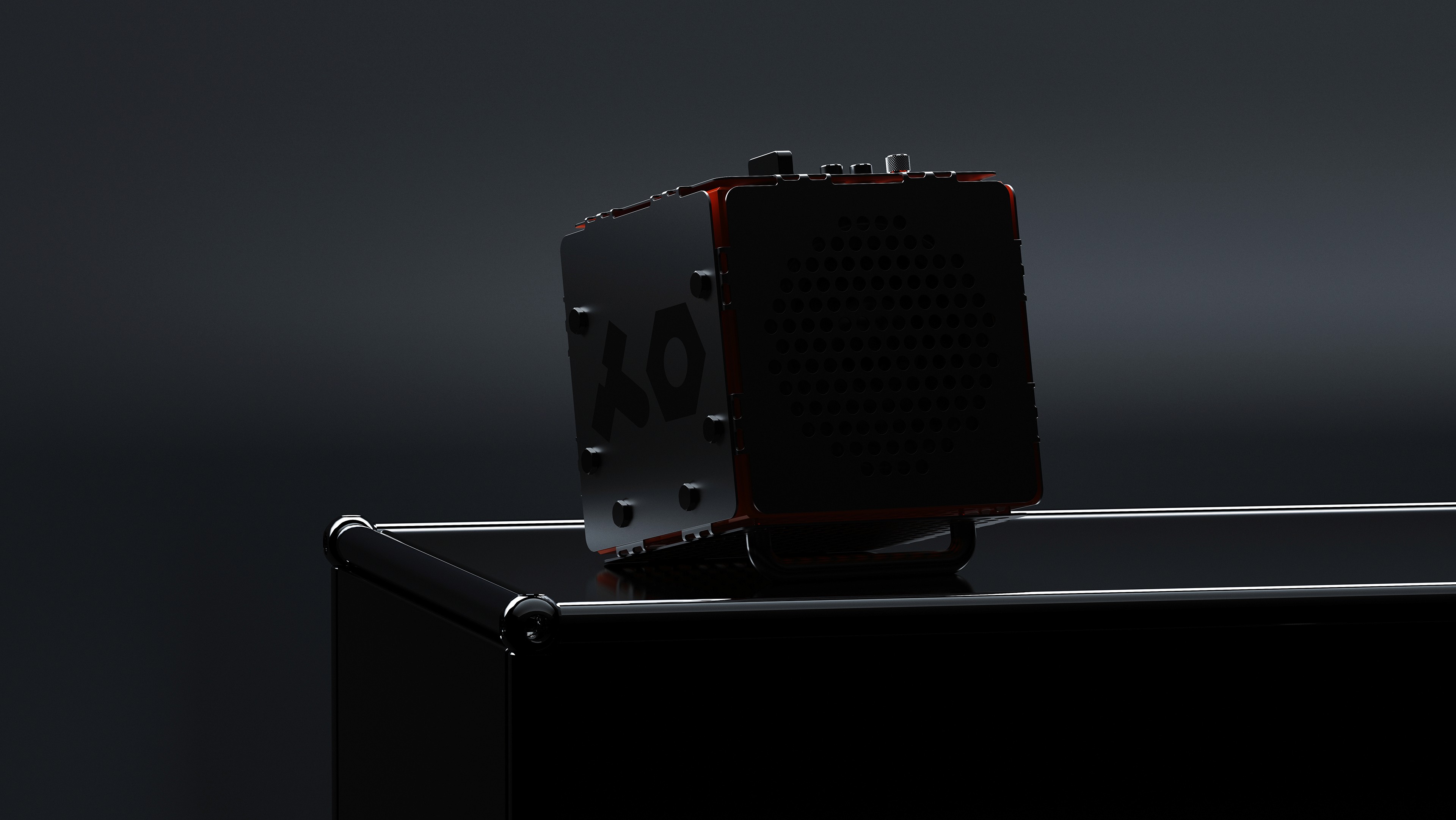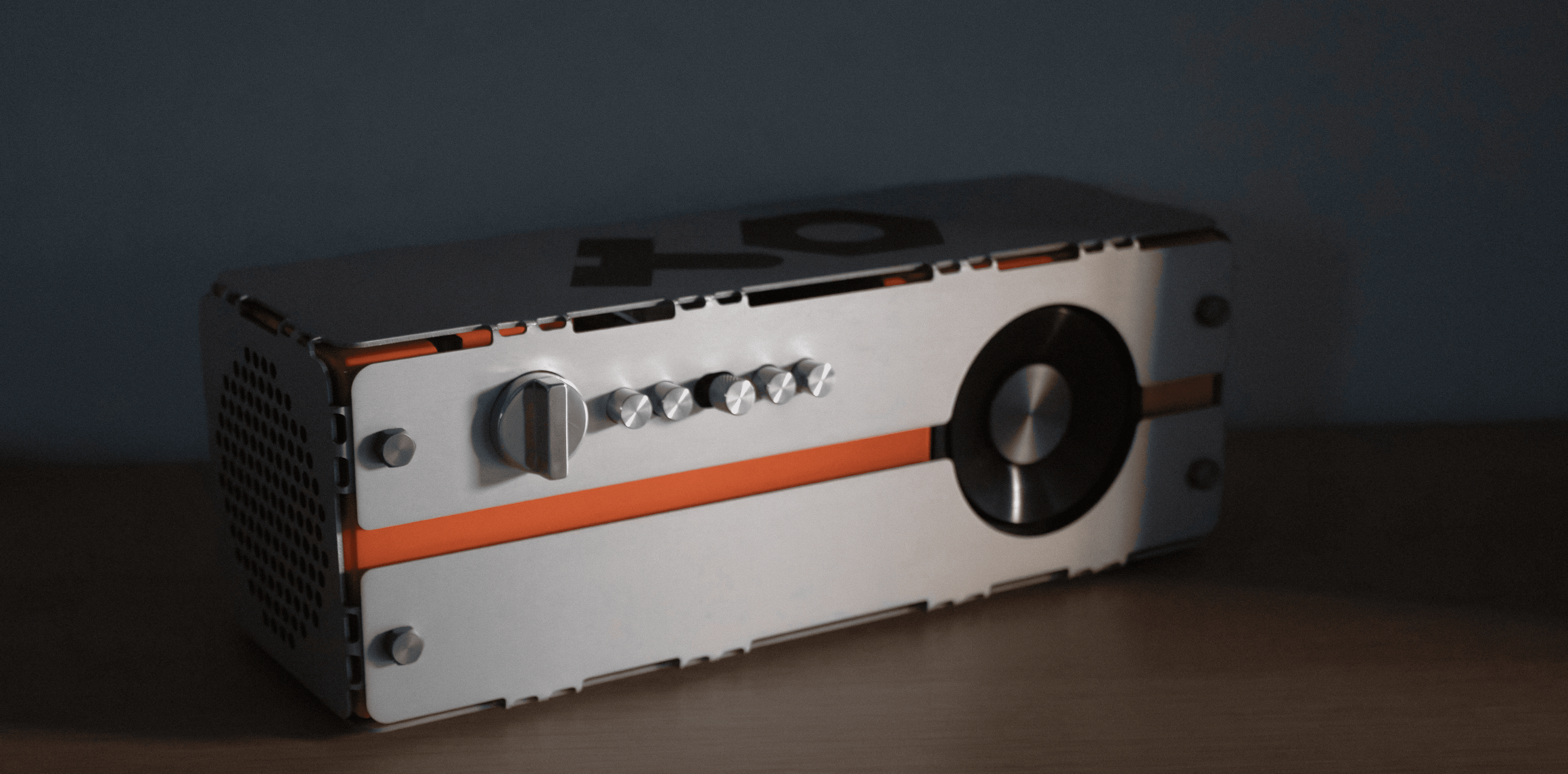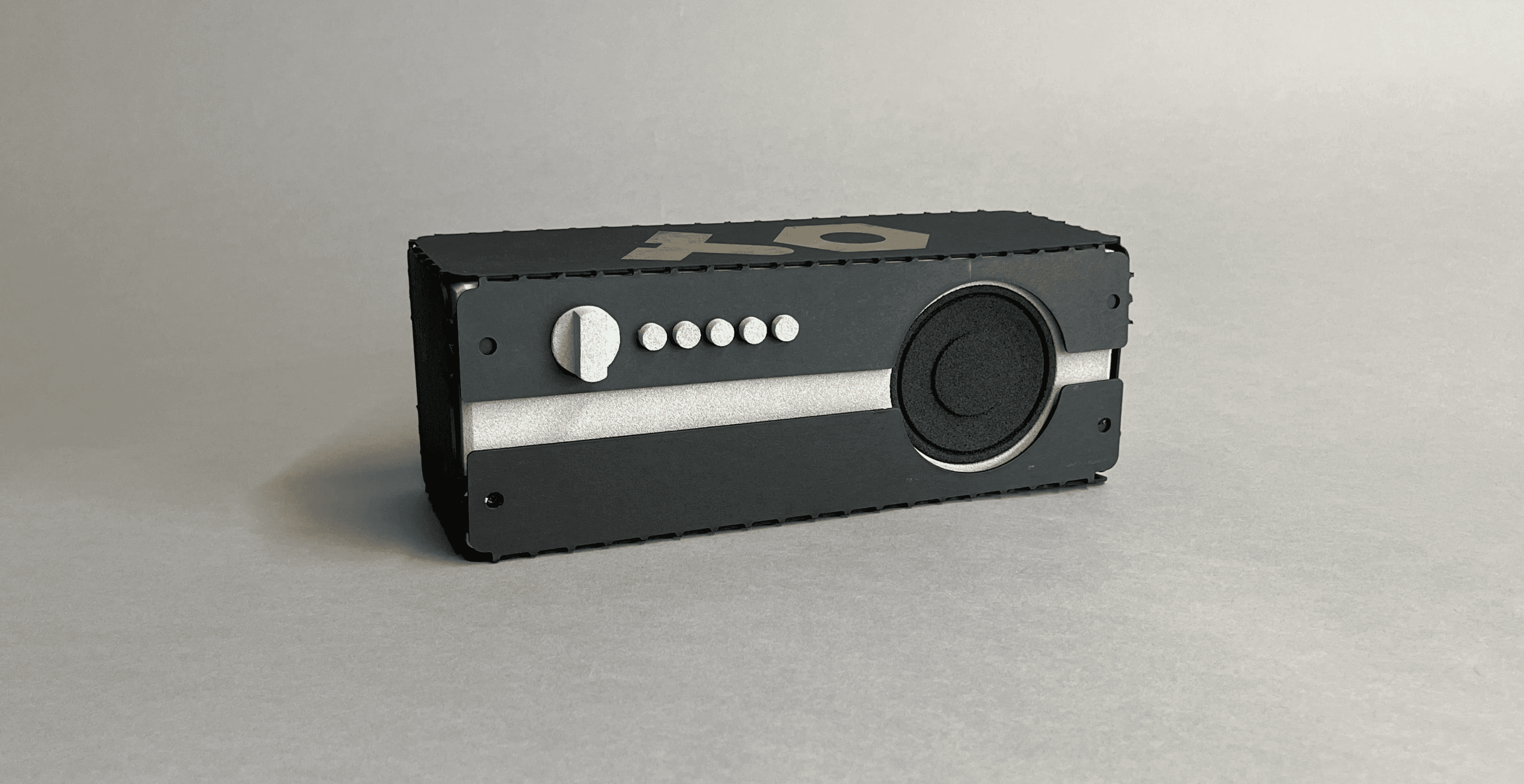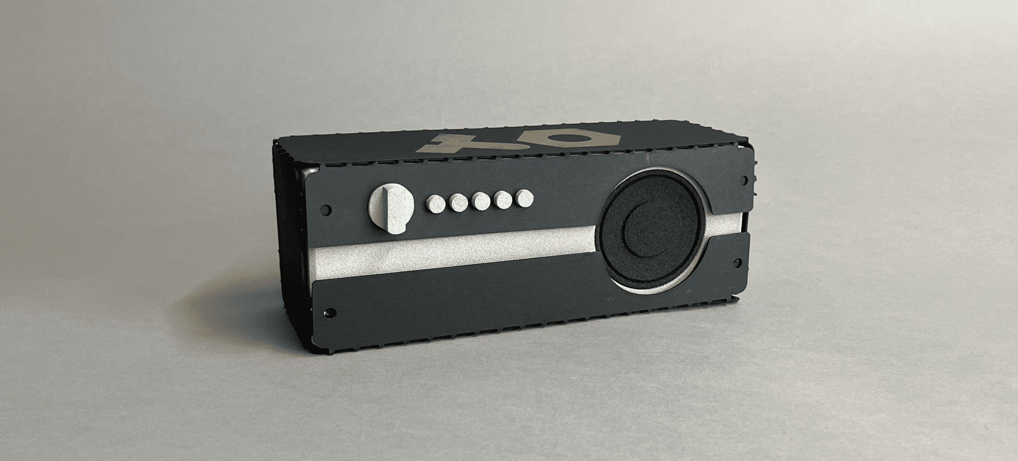 I crafted a functional model with off the shelves electronics, laser cut sheet metal, hand-milled speaker enclosure and hand-lathed metal buttons.